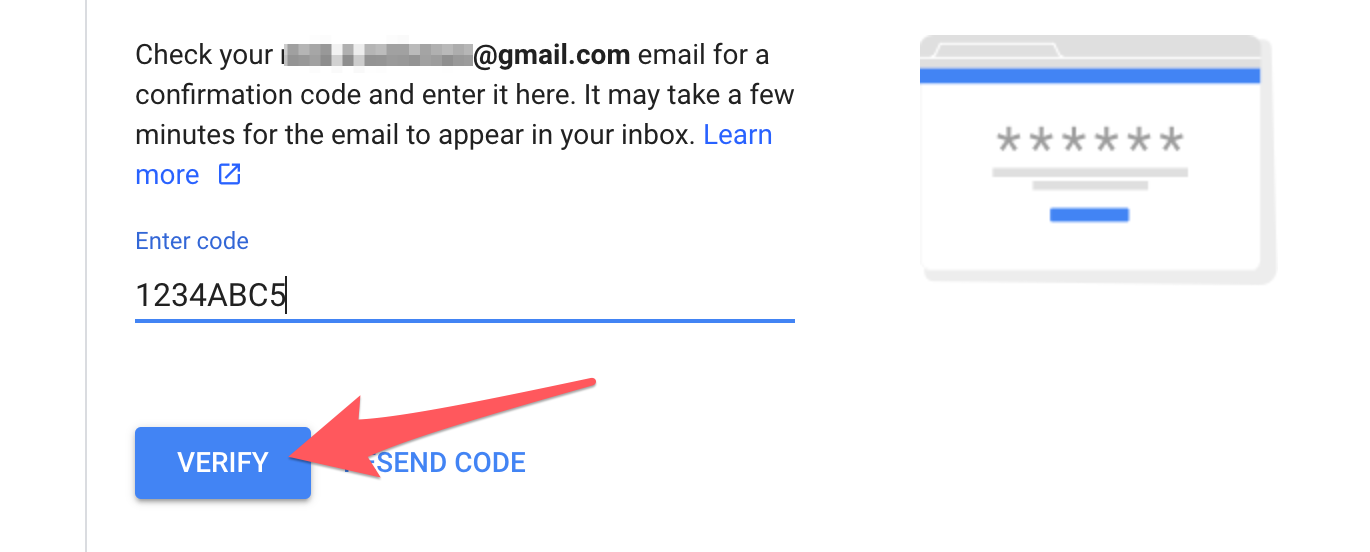 Back on Google's account transfer form, enter the verification code, then select 'Verify.'